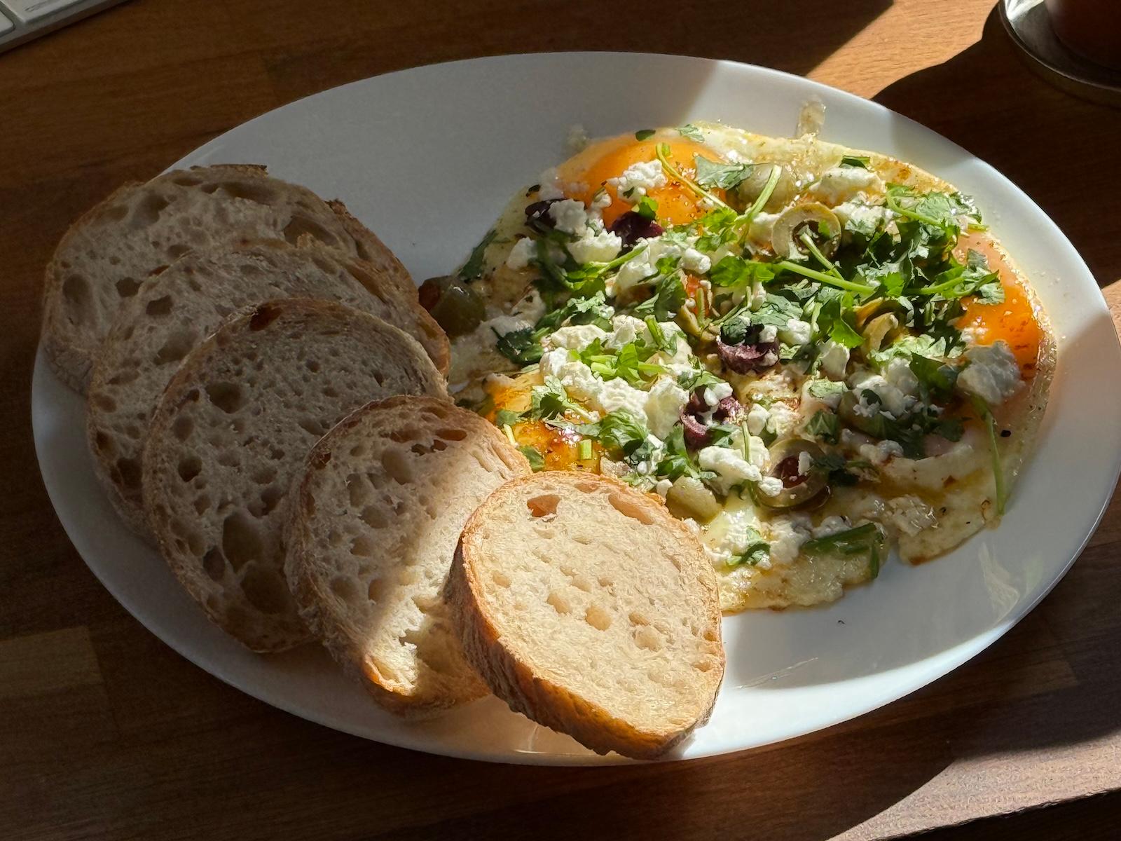 - Sprinkle with feta, olives, and the rest of the cilantro. Serve with bread.